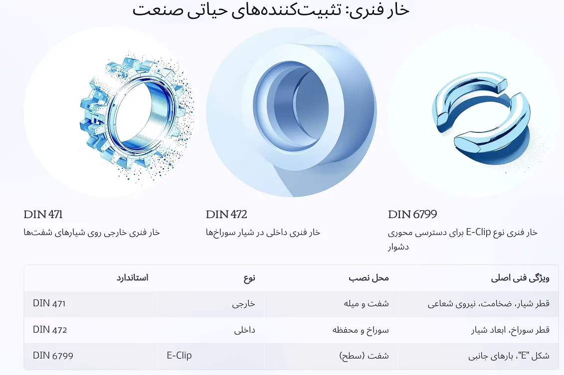 خار فنری مخصوص DIN 6799 طراحی شده برای شیارها و کاربردهای ویژه